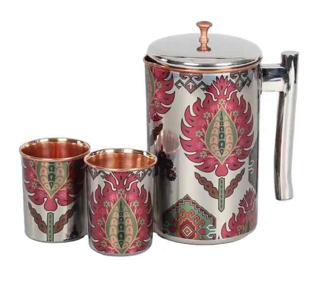 Enamel Printed Copper Metal Water Jug for Kitchen Handmade Solid Copper Bottles Drinking Copper Water Jugs at Low Price