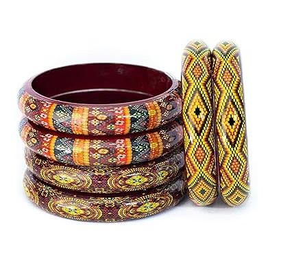 Enamel Printed Wood Bangle Cheap Price Best Polished Women Party Wear Use Hot Sale Latest Wood Bangles Factory Direct Sale