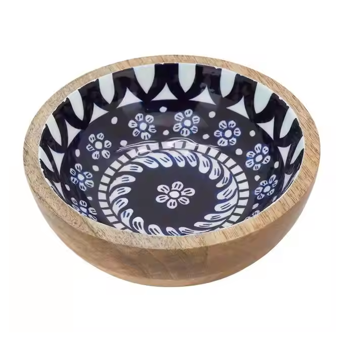 Enamel Printed Wood Bowl Custom Round Wood Dough Bowls Rustic Decorative Hot Selling Wood Salad Printed Bowl
