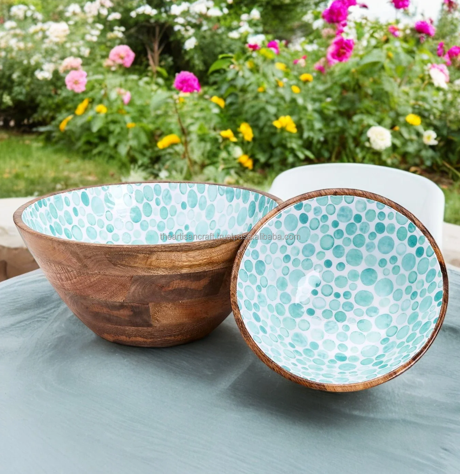 Enamel Printed Wood Salad Server Bowl Printed Wooden Bowl Snacks Serving Rice Dish Bowl Competitive Prices