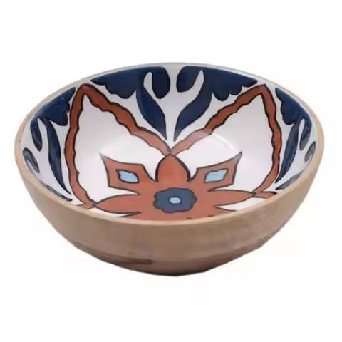 Enamel Printed Wooden Salad Bowls for Party Wedding Restaurant & Hotel Design Dry Food Serving Bowls