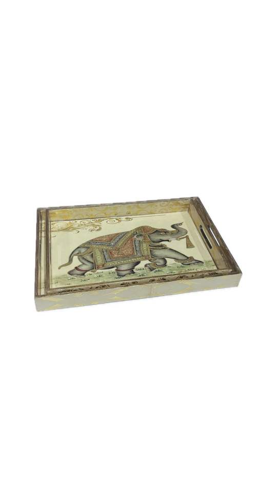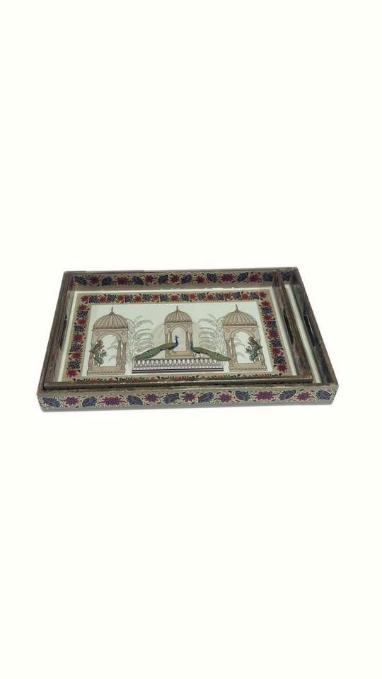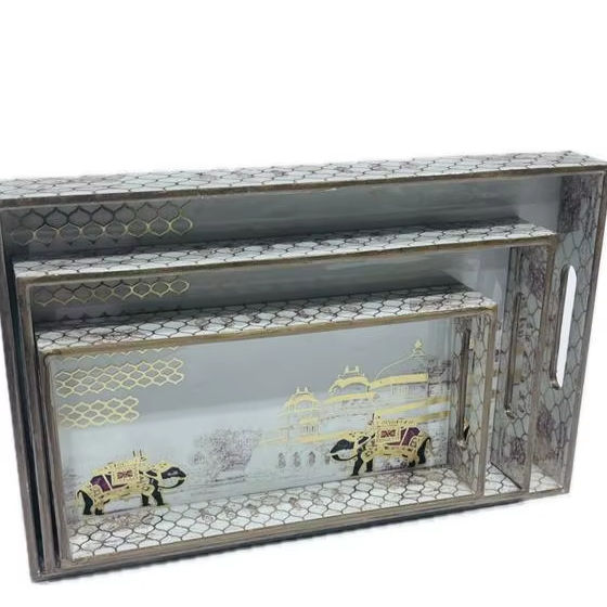 Custom Enamel Printed Wood Tray Set Art Deco Style Elegant Plant Design Eco-friendly Custom Logo for Restaurant Hotel Home