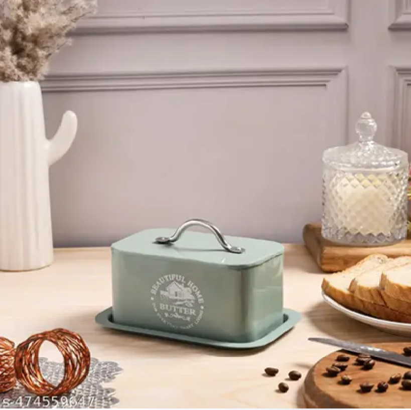 Enamel butter dish, wooden lid, guitar shape, butter spreader knife, white and black, modern kitchenware, unique design