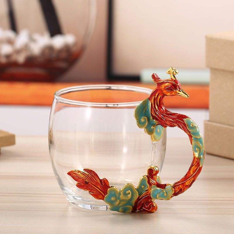 Enamel-colored Water Cups Household Round Glass Cup Breakfast Milk Cups