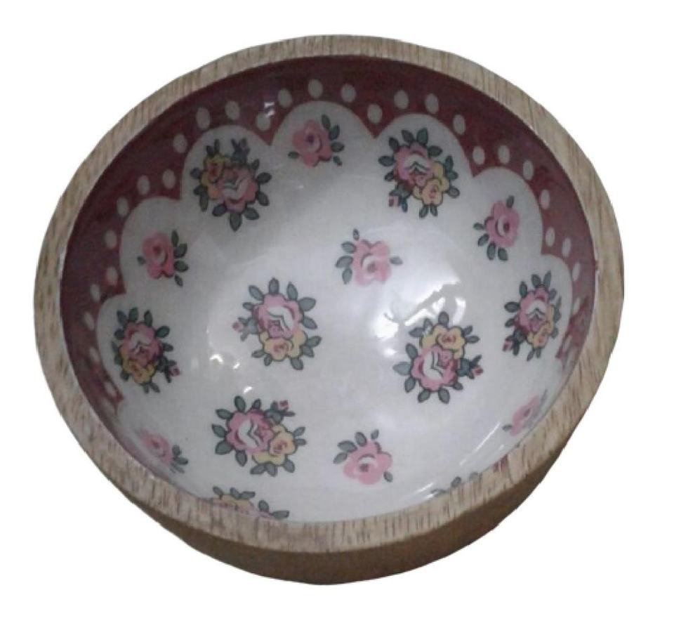 Enameled Printed Design Wooden Bowl and Spoon Fork Set