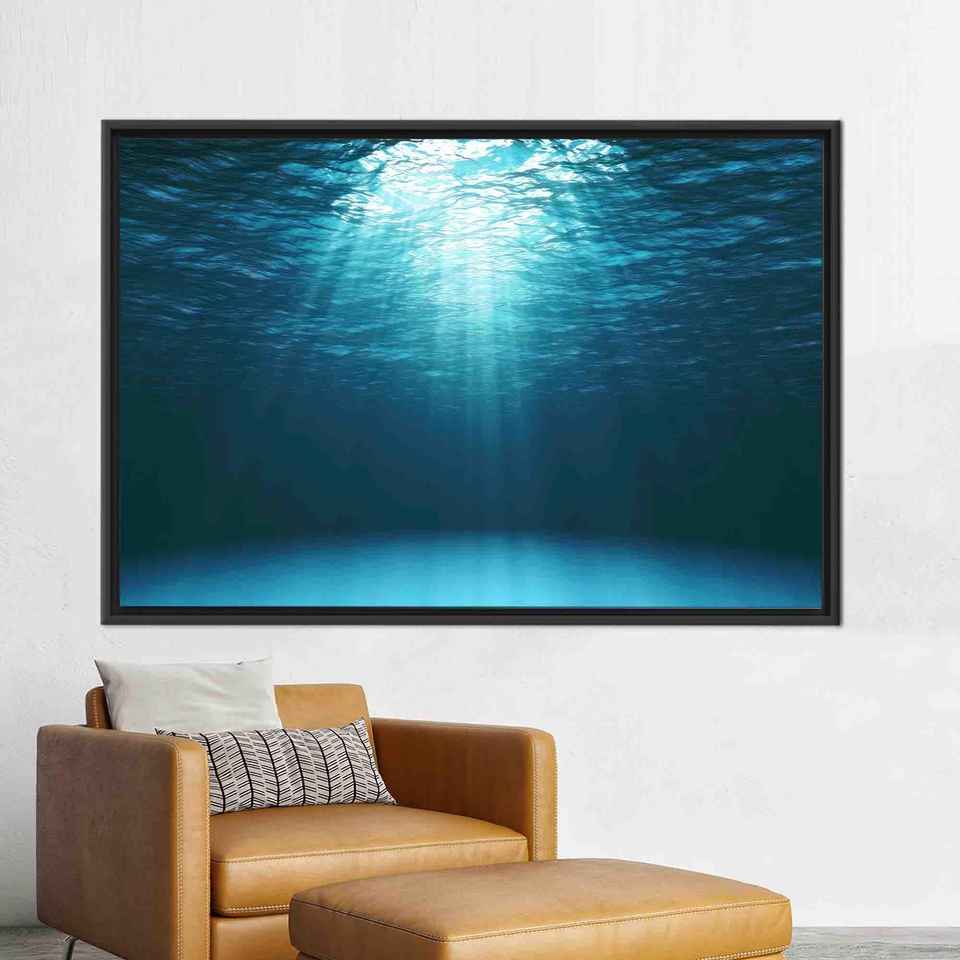 Enchanting Underwater Sun Rays Printed Canvas Wall Art Decor,1P:Black Framed