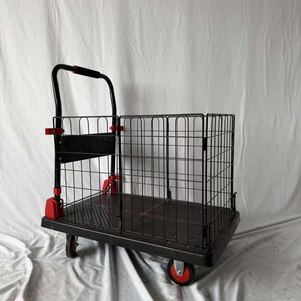 Enclosed Platform Trolley with Cage Plastic Handcart With Fence Trolley Cart Mesh Hand Truck