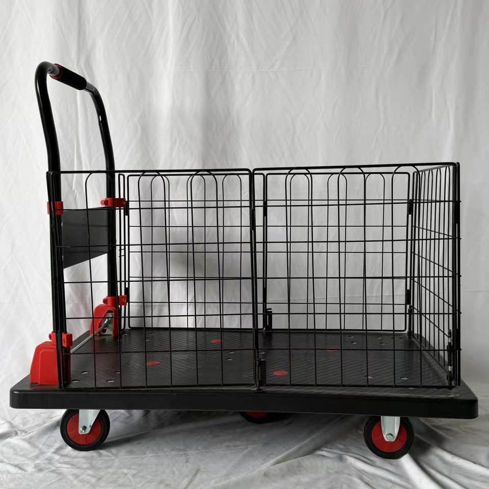 Enclosed Platform Hand Trolley with Cage Plastic Handcart Fence Mesh Design-Made in China