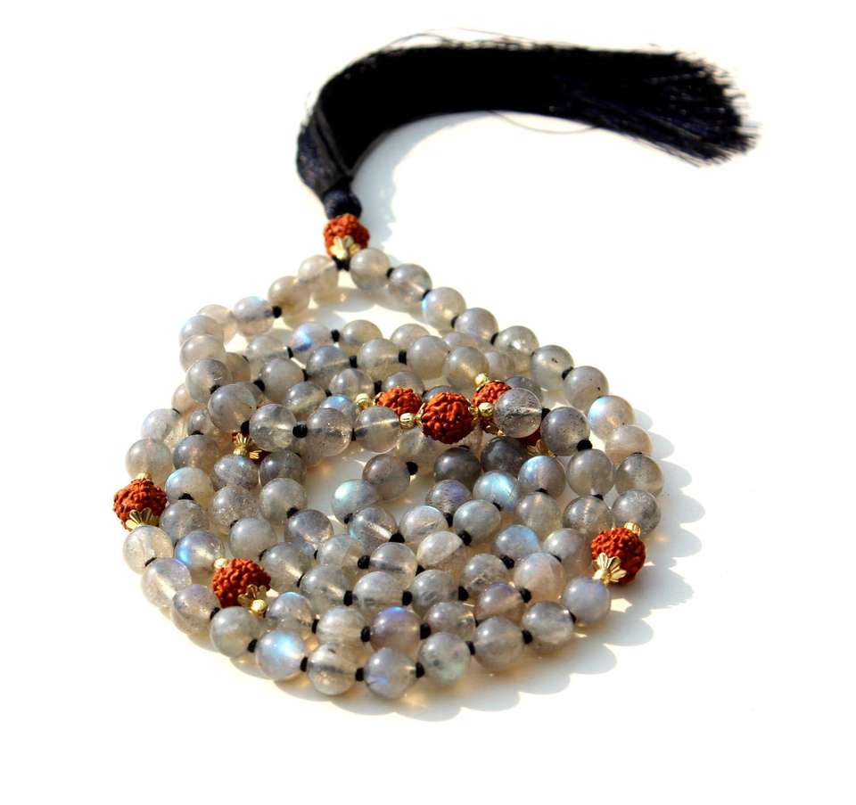 Energized Spiritual Men's Mala Necklace 108 Round Beads Silk Tassel Knotted Natural Healing Crystal Stone Piedras Naturales