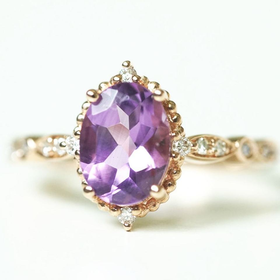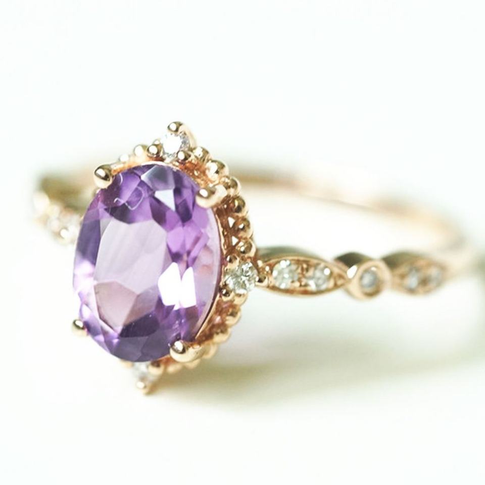 Engagement Amethyst Ring for Women 925 Sterling Silver Dreamy Amethyst Round Amethyst With Diamond
