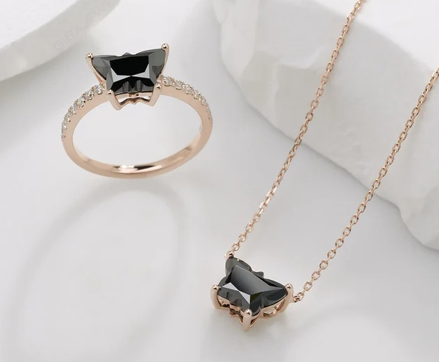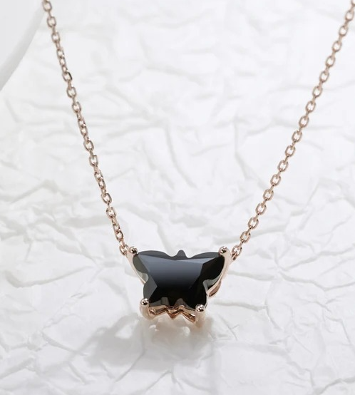 Engagement Necklace Black Butterfly cut Moissanite Necklace Engagement Women Necklace