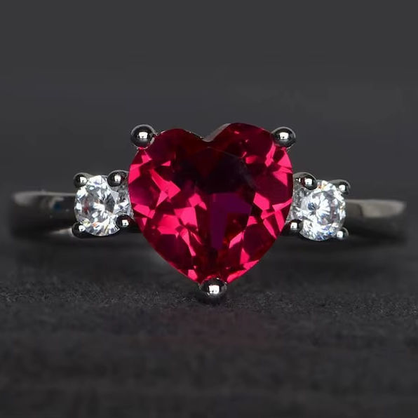 Engagement Ruby Ring Heart Cut Red Gemstone Sterling Silver Ring July Birthstone Jewelry