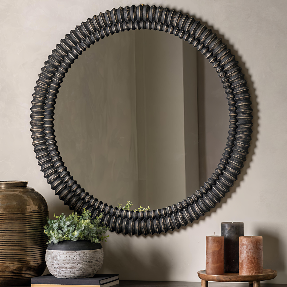 Engineered Wood Wall Decor Rounded Wall Mirror Frame for Living Room Entryway Bedroom Bathroom Over Sink Vanity Black Painted
