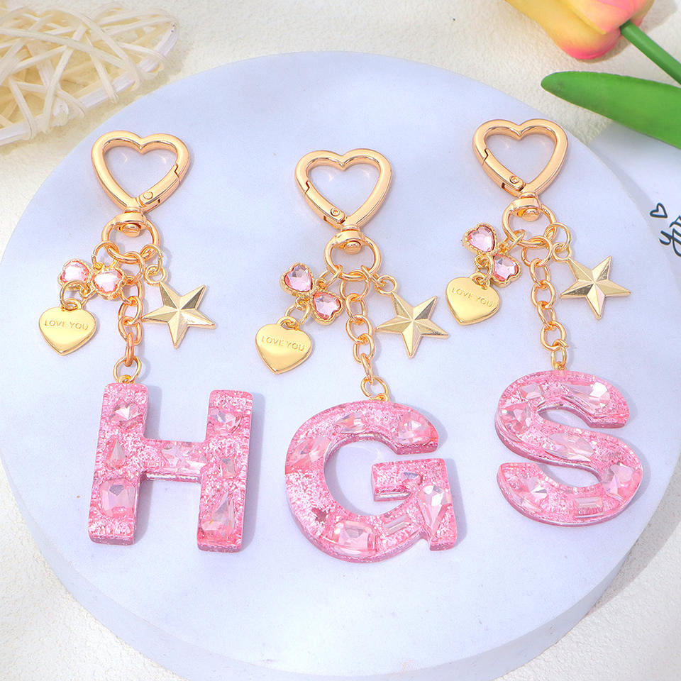 item name:2025 Crystal Droplet Glitter Letter Pendant Butterfly Keychain