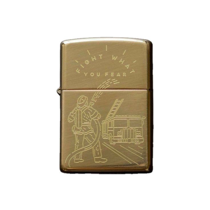 Engraved Brass Fire Rescue Flip Lighter Fireman Illustration Refillable Pocket Lighter Gift for Men Wholesale