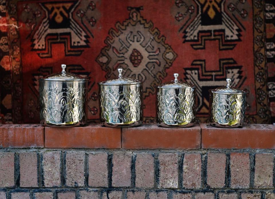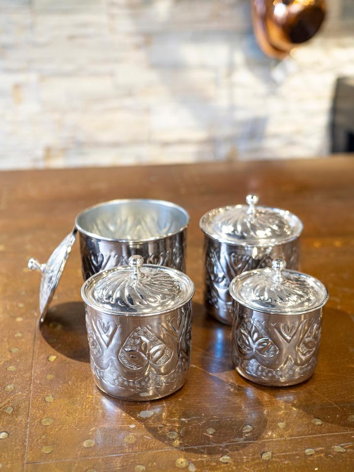 Engraved Design Metal Silver Container For Kitchen Storage Sugar Tea Coffee Elegant Durable Modern Pantry Canister Jar