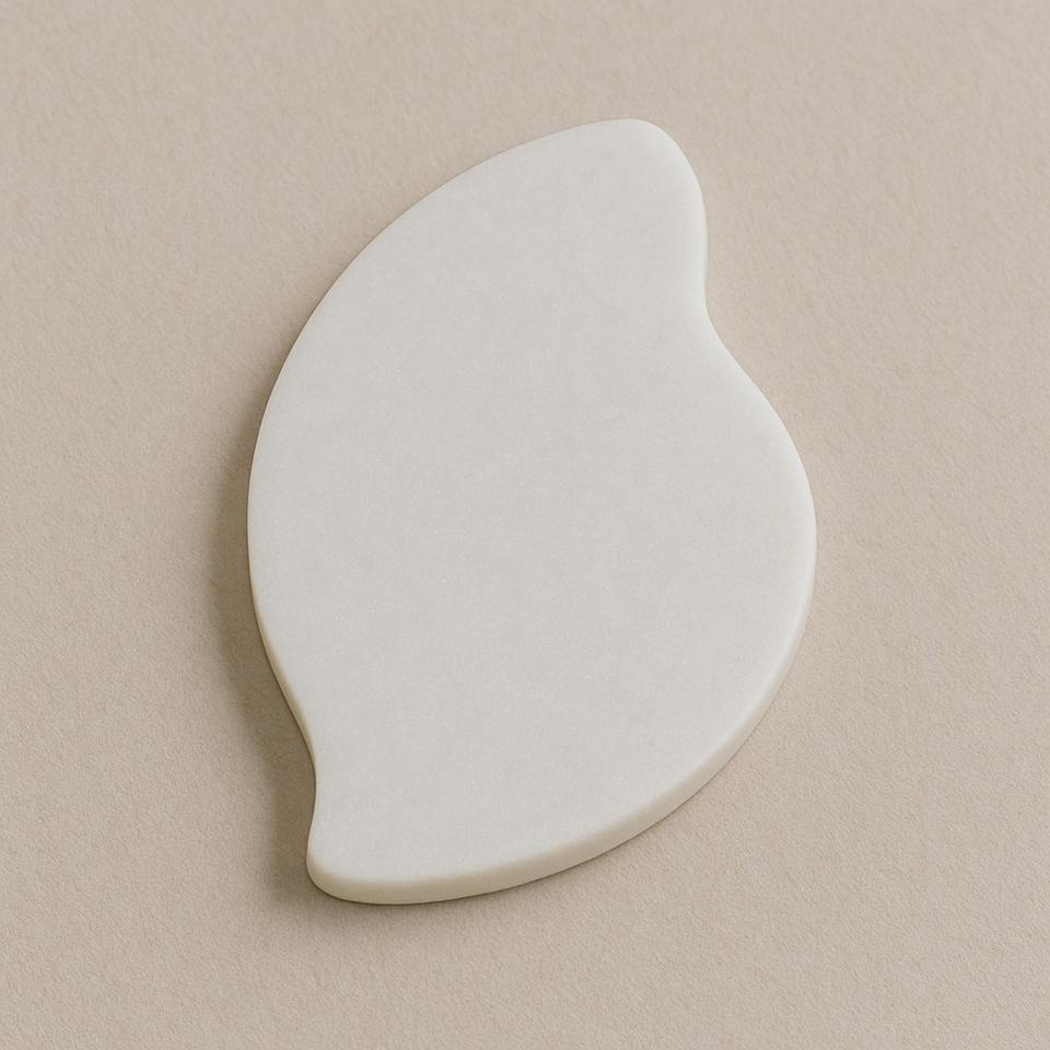 Engraved Leaf Shape White Marble Stone Coaster Natural Drink Pad Decorative Tabletop Trivet Base Holder Home Kitchen Bar Modern