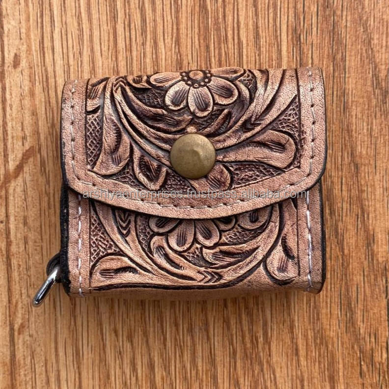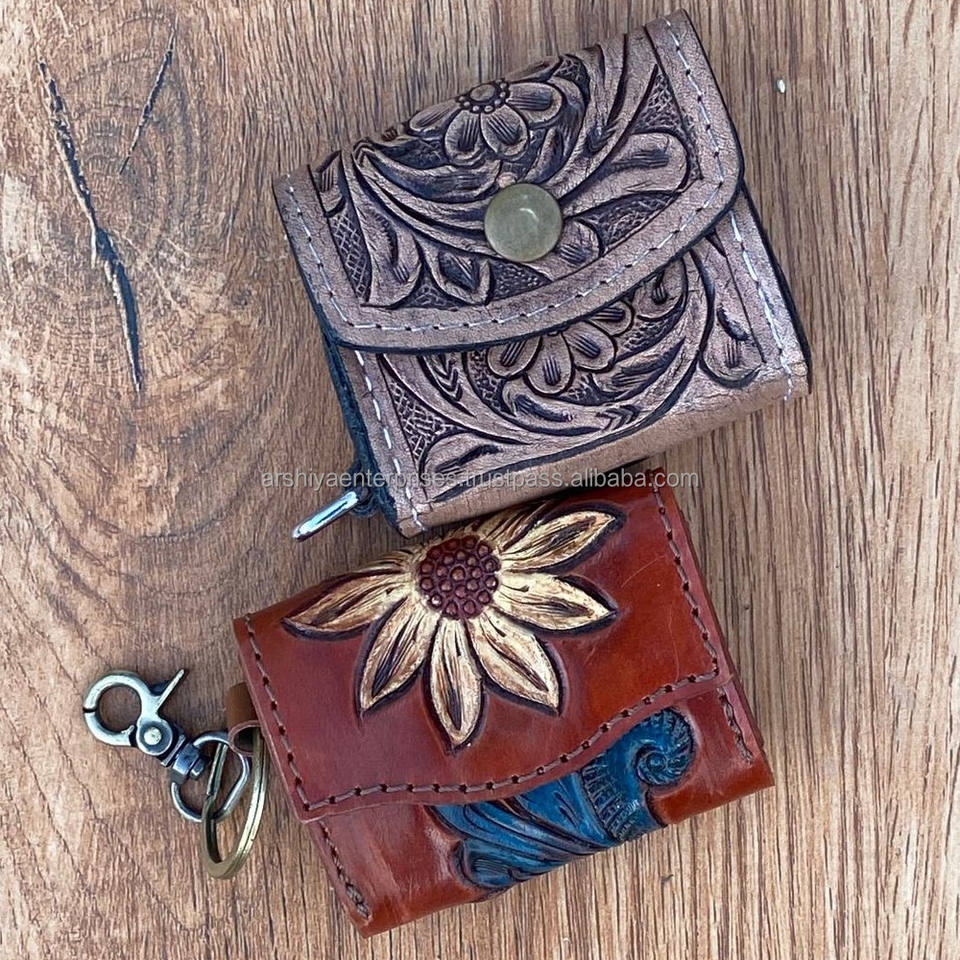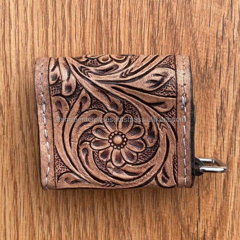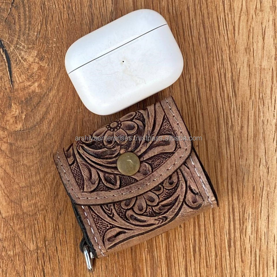 Engraved Leather Air Pod Cases Stylish Personalized Travel Earphone Cases Tooled Cowhide Genuine Leather Protective Air Pod Case