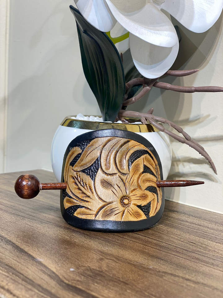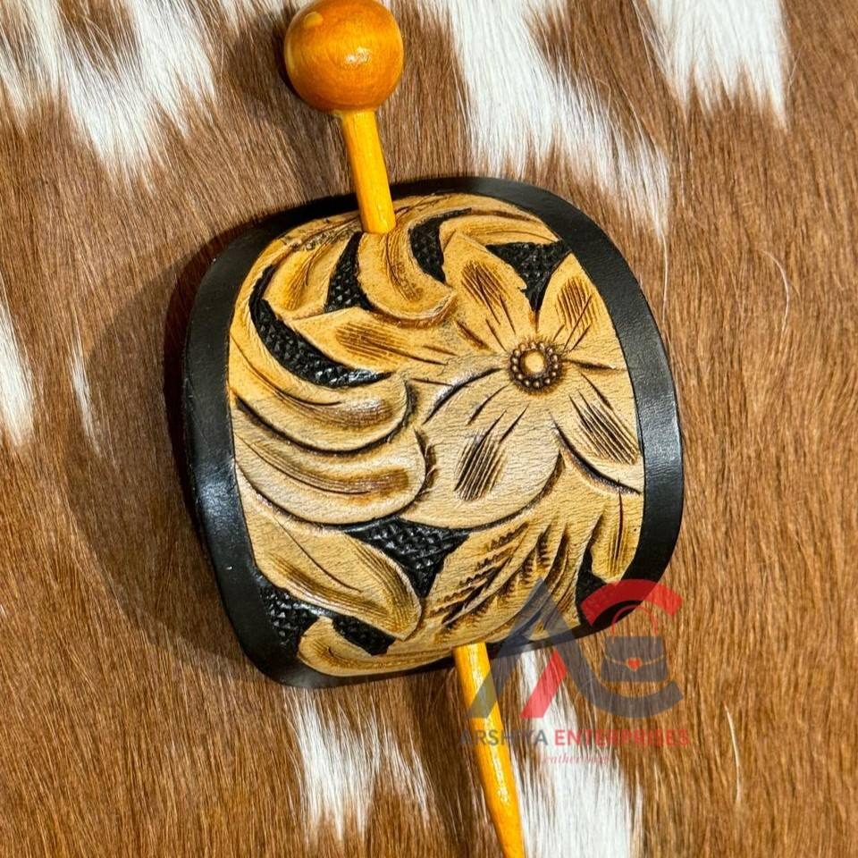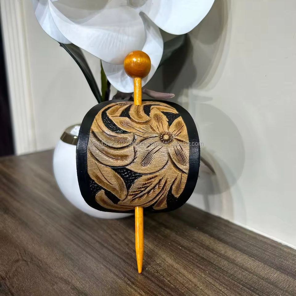 Engraved Leather Hair Barrette Western Flower Pins Retro Style Hair Stick Boho Leather Southwestern Style Hair Slide