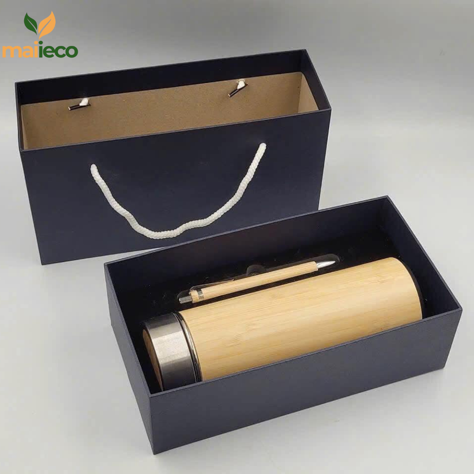 Engraved Logo Stainless Steel Coffee Thermos Insulated Hot Water and Cold Drinks Classic Design Bamboo Products Water Bottle