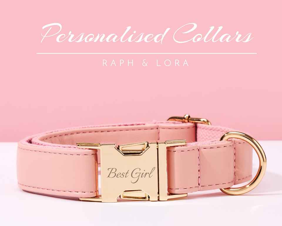 Engraved Modern Tactical Pink Puppy Leash with Rivet Handmade Leather Personalized Pet Collar Wedding Gift for Him & Her