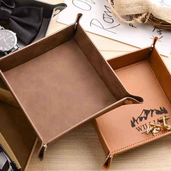 Engraved Valet Tray Gift for Dad Personalized Leather Catchall for Men Anniversary Monogrammed Home Decor Gift for Him LTY-0006