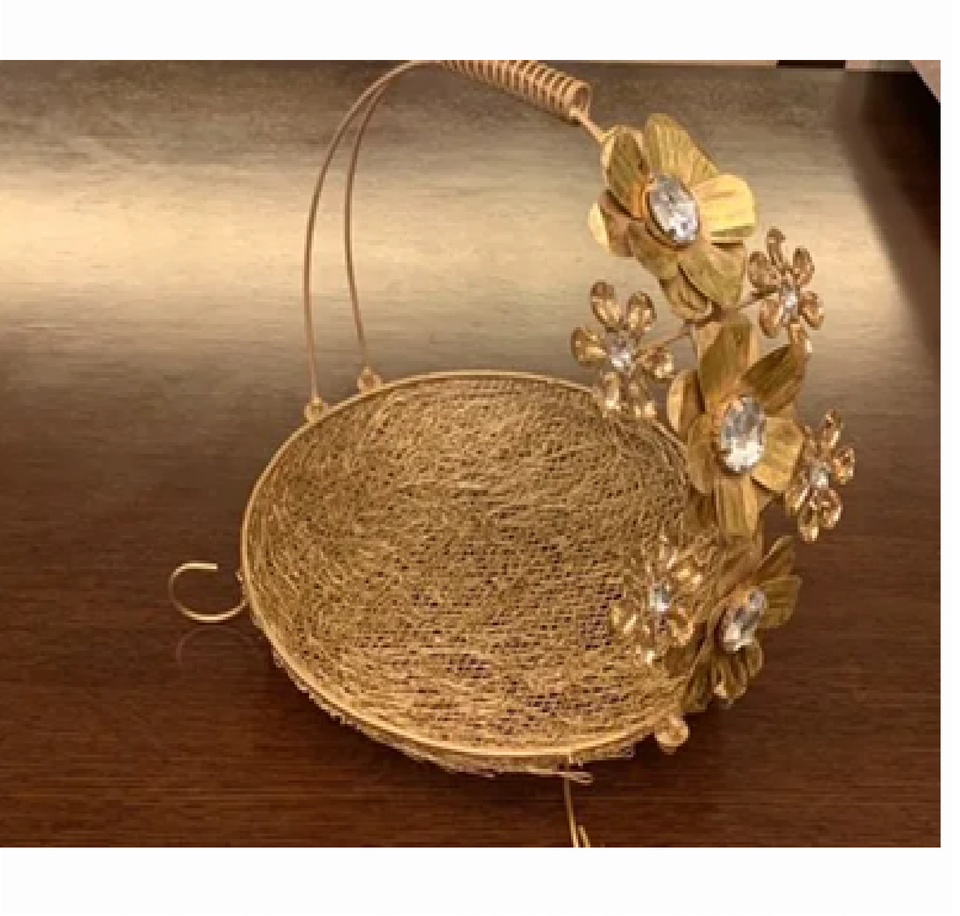 Engraved floral metal gift basket elegant and stylish presentation basket for weddings celebration available at wholesale prices