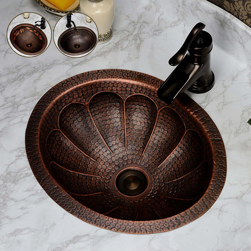 Engraving Finished Pure Copper Wash Basin Round Shape Copper Basin Elegant for Hotel Villas Resort Bathroom Usage