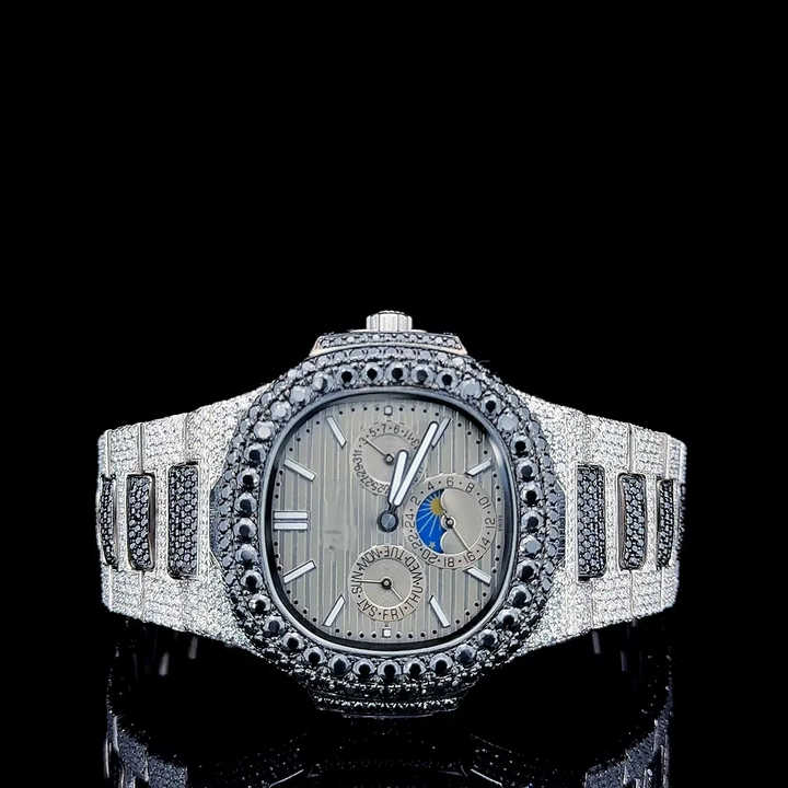 Enhance Luxury Fashion Black White Moissanite Diamond Crafted Analog Dial Quartz Watch Customized Stainless Steel Band