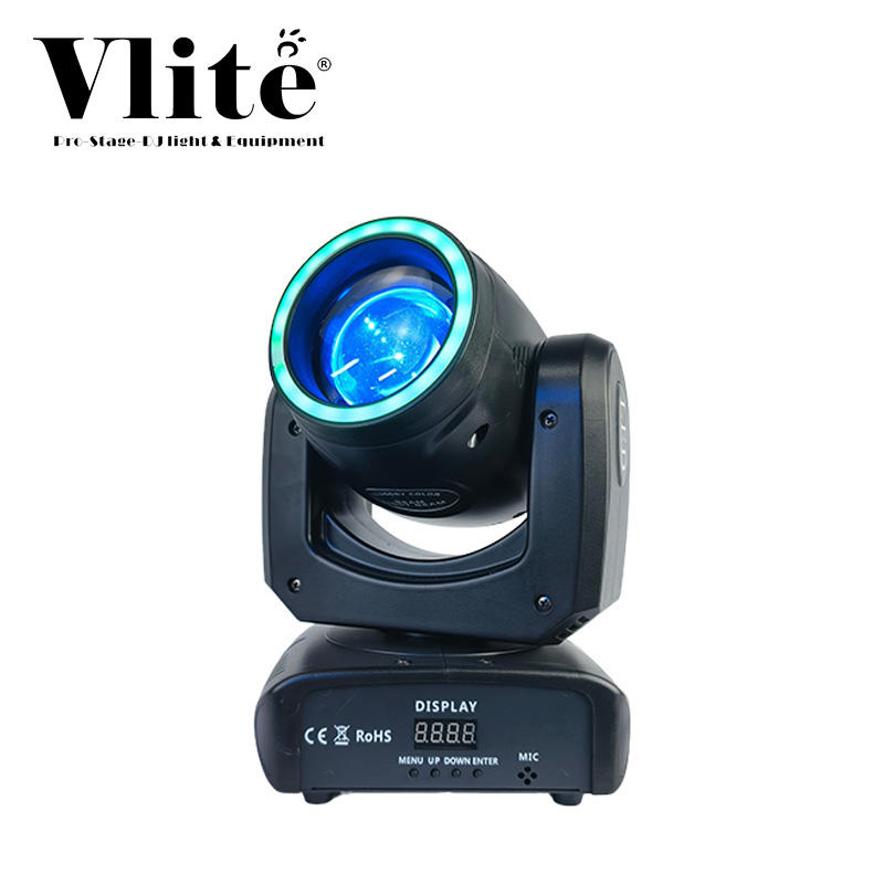 Entertainment Beam 100 Mini Moving Head Light with RGBW LED Ring 13 Gobos DMX512 Control for Stage Lighting