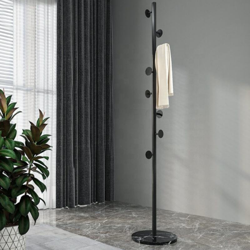 Entryway Coat Rack Stand Tree Metal Tube Marble Base Clothes Hanger