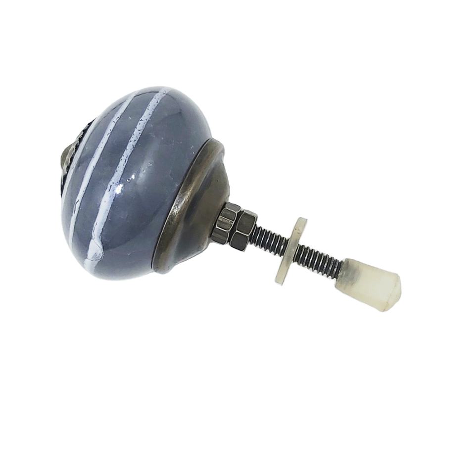 Epic Grey Ceramic Knobs White Strips Metal Drawer Cabinet Handle Pulls for Kitchen Bedroom Dining Wardrobe-CK 558