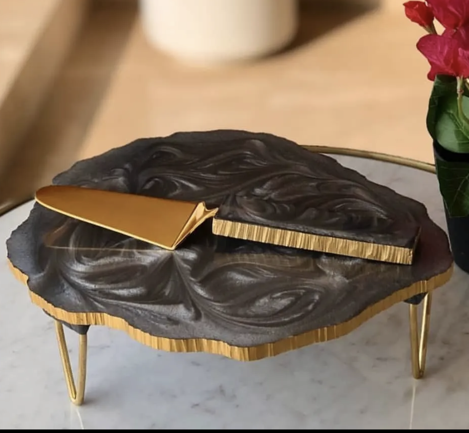 Resin Cake Stand Love MODEL Handmade Customized Size for Dessert Stand Serving Tray Mold with Cup Coaster and Knife