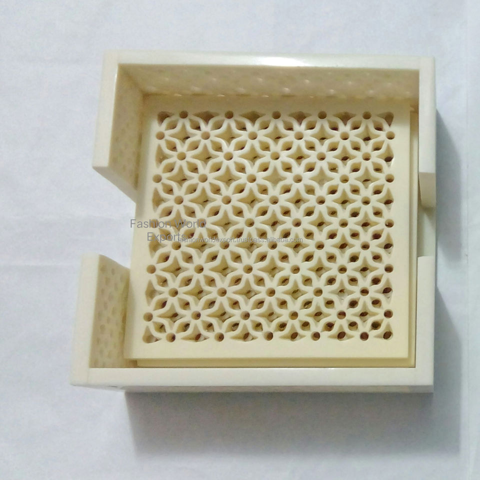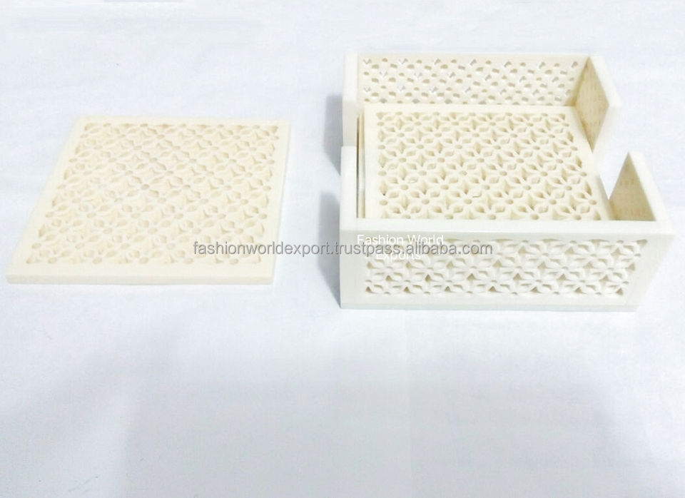 Epoxy Resin Inlay Coasters Elegant White Square and Gold Leaf with Real Dried Wood 5mm Thickness for Drinks