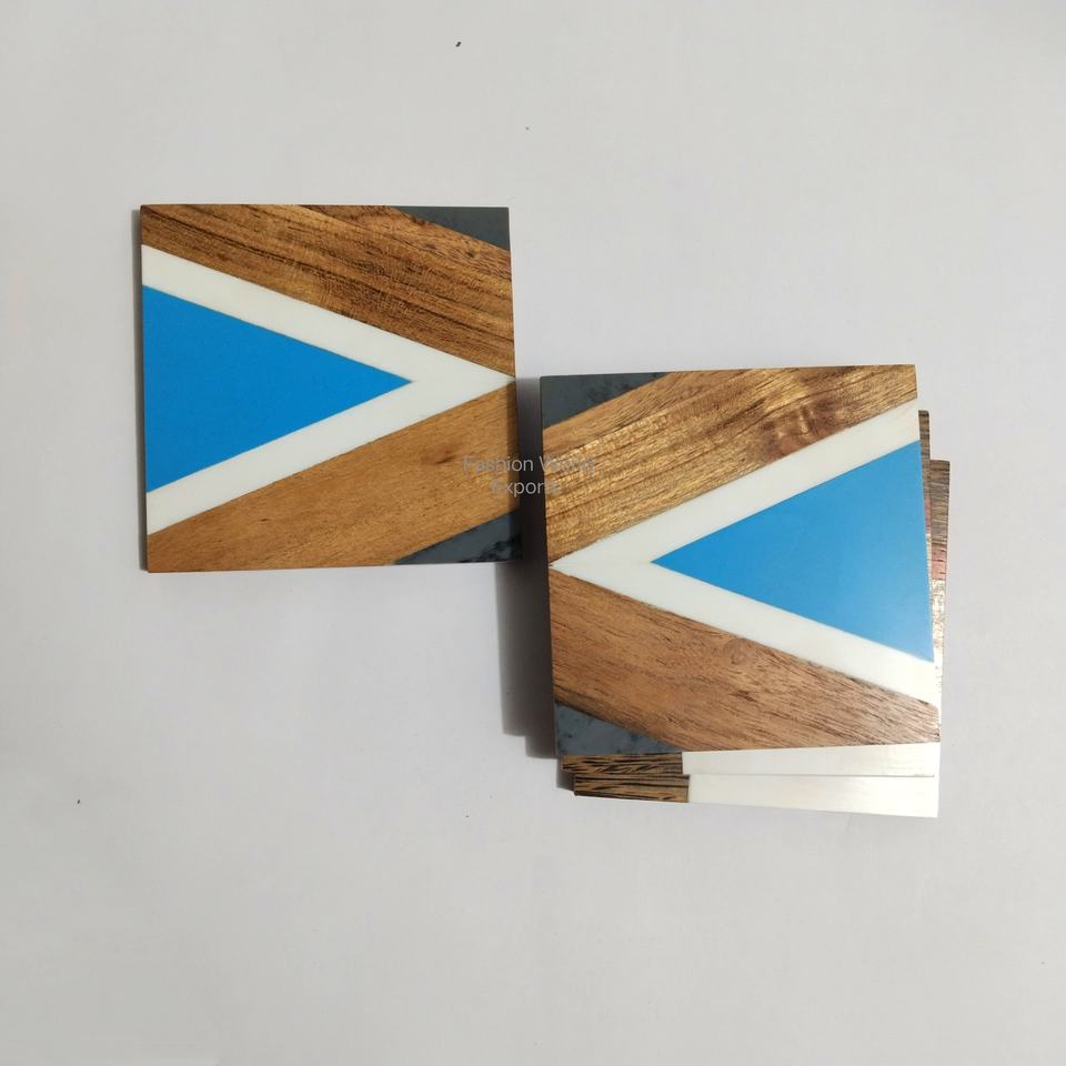 Epoxy Resin Square Coaster Black & White Wood MDF Drink Mats Pads for Table Top Decoration Resin Coaster Table Decoration