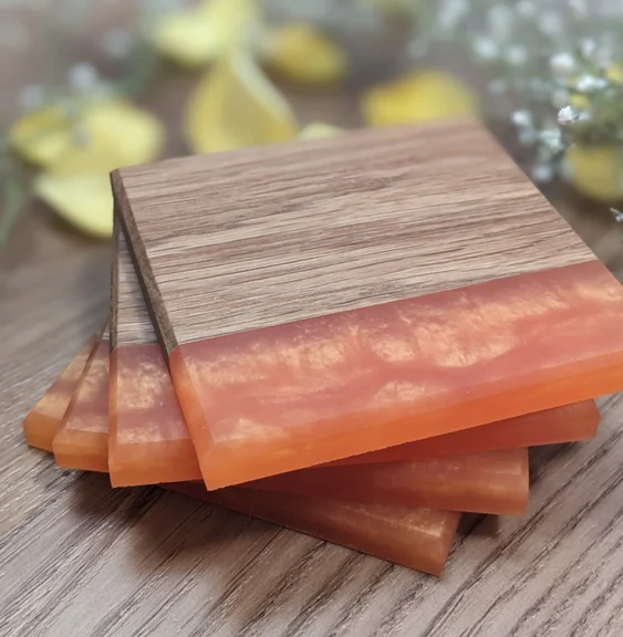 Epoxy Resin & Wood Coaster 4-Different Epoxy Resin And Natural Wooden Drink Tea Coaster From Indian