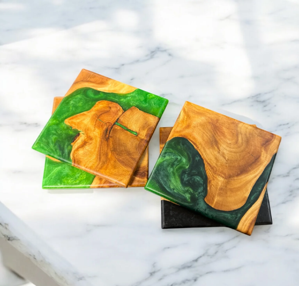 Epoxy Resin & Wood Coaster Style Kitchen Mat/Pad for Home Use Premium Quality Handcrafted Resin & Wood Coaster