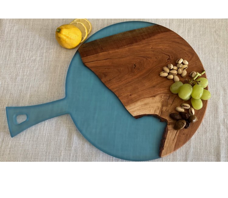 Epoxy Resin & Wood Cutting Board River Design With handle Square Shape Wood & Epoxy Resin Chopping Block