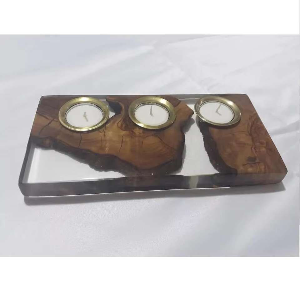 Epoxy Resin Wood Unique Design Handmade Candle Holder or Resin and Wood Tea Light Holder
