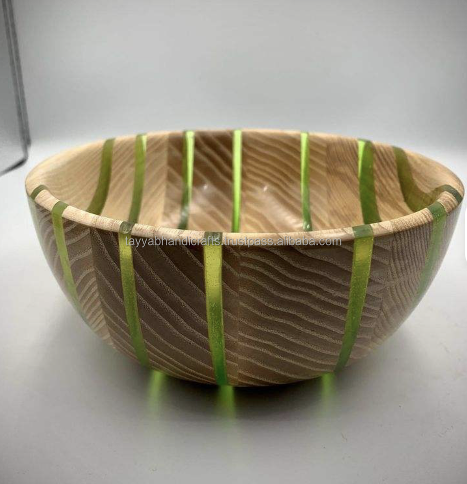 Epoxy Resin and Wood Salad Bowl Mango and Acacia Wooden Enamel Sticker Print Bowl Design from India