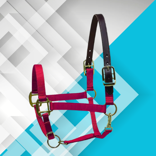 Equestrian Crown Nylon Horse Halter Brick Red with Adj Leather English & Western Saddle Accessory PP Rope for Horse Training