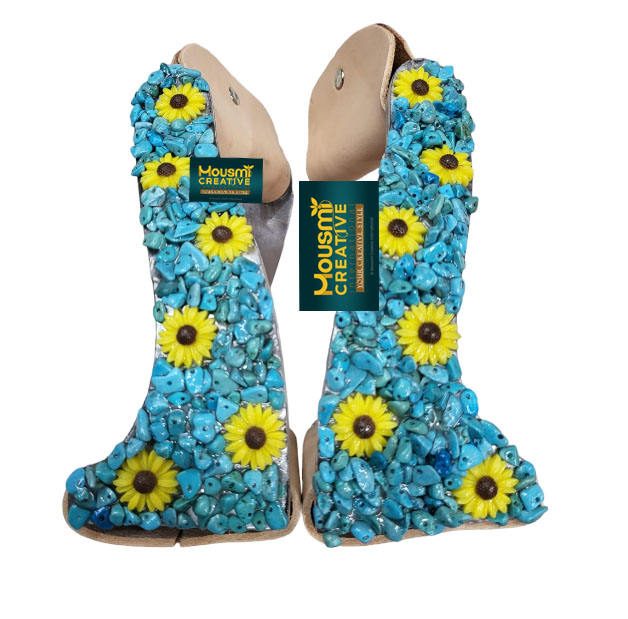 Turquoise Pebble Stones with 3D Sun Flower (*Customization Accepted)