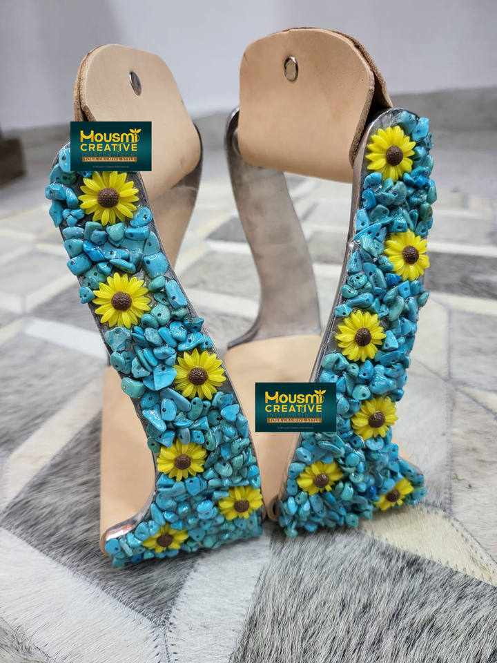 Equestrian Horse Aluminium Offset Stirrups Pair Fascinating With Turquoise Pebble Stones Multi Custom Design Horse Stirrups