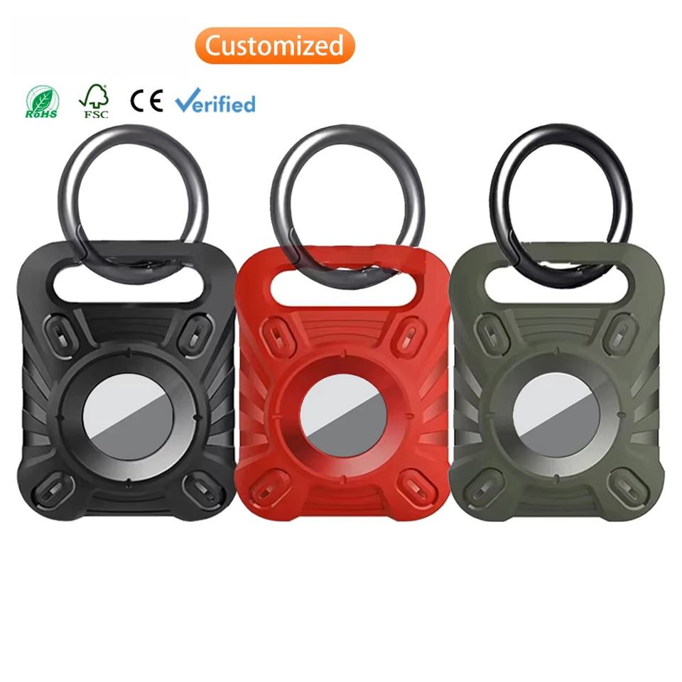 HUANLONG for Airtag Holder Silicone Case Protector Cover With Metal Keychain Anti-Scratch Fall Cover for Airtag Accessories Case