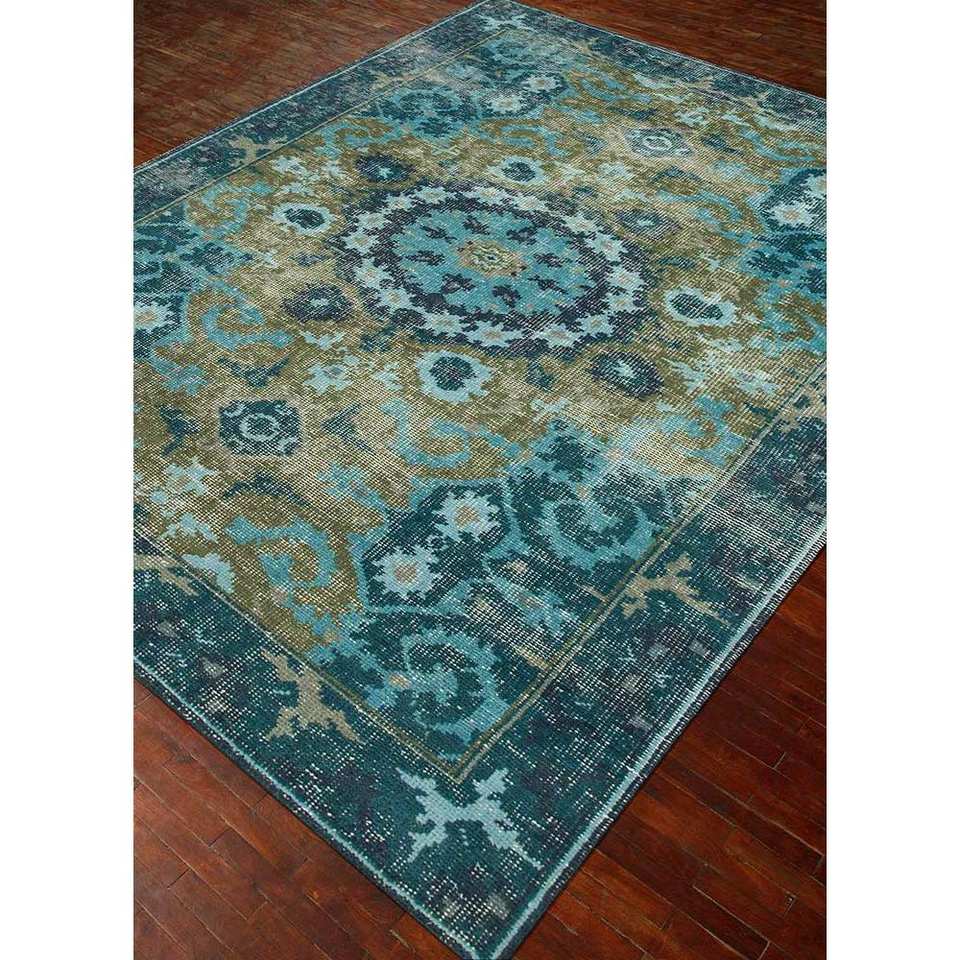 Erbe Green Hand Knotted Wool Rug PKWL-8002 9x12 Boho Medallion Pattern for Living Room Decorations Jaipur Rugs