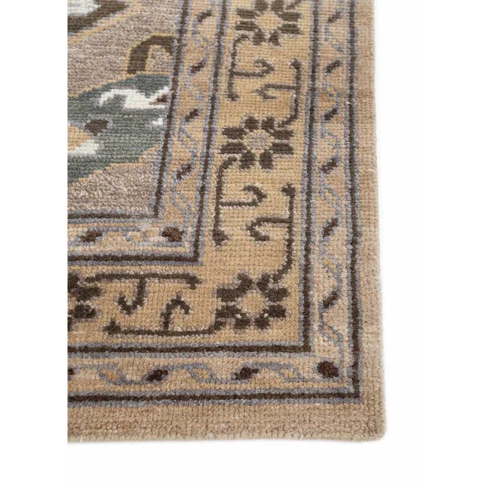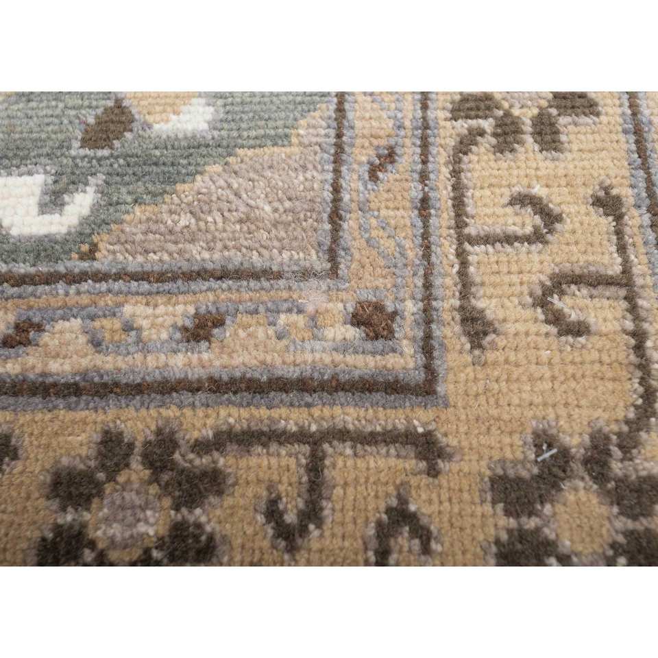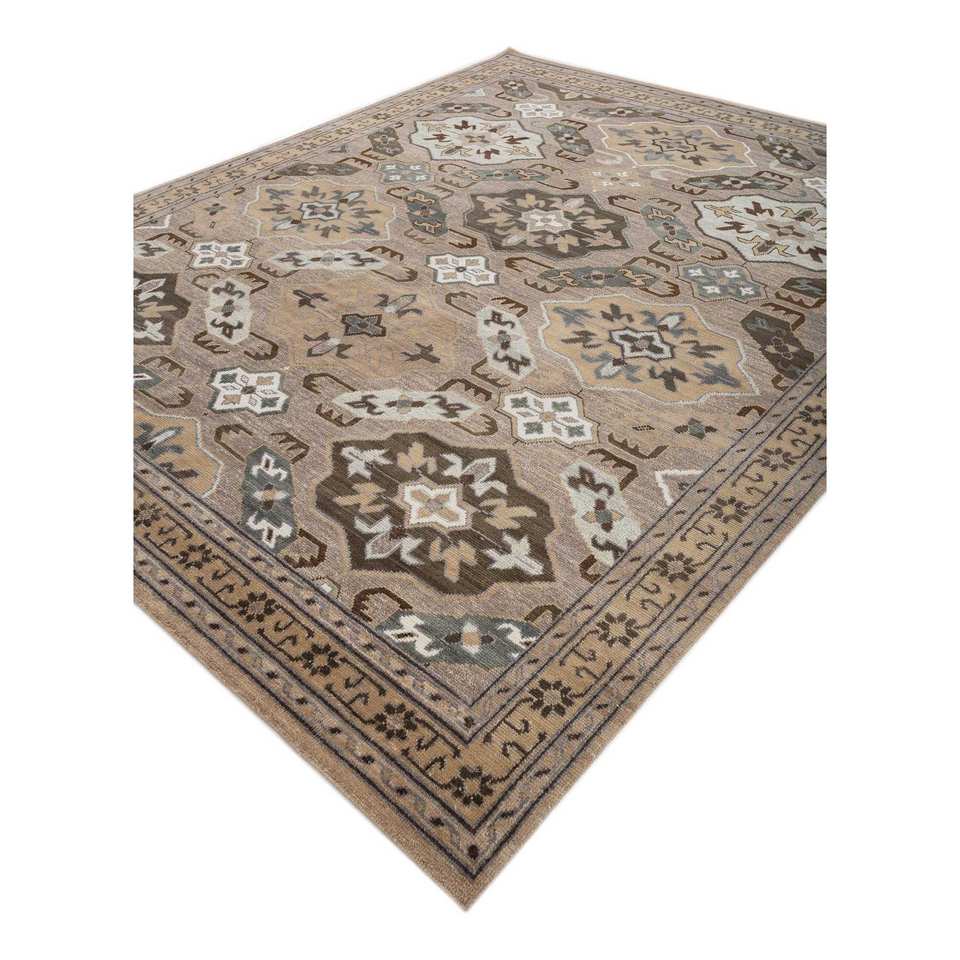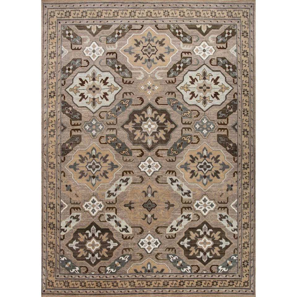 Erbe Hand Knotted Wool Rugs Beige & Brown Geometric Pattern for Home Use-for Living Room Hallway Entryway AKWL-13023
