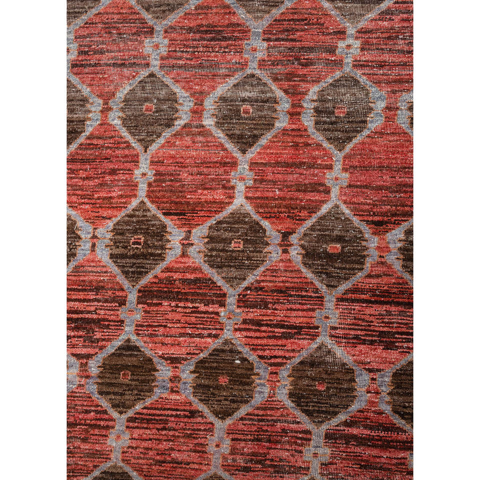 Erbe Hand Knotted Wool Rugs Red & Orange Geometric Abstract Pattern for Entryway Living Room Hallway 9x12 Rectangle Size-EA-3134