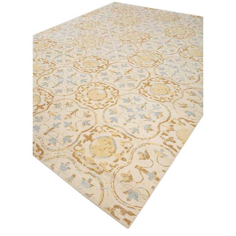 Erbe Ivory Hand Knotted Wool Rug Medallion Pattern for Living Room Decorations Hallway Rectangular Rectangle LVV-3037 (CS-01)