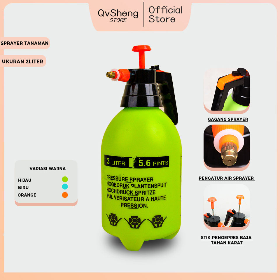 Ergonomic 3L Green Pressure Sprayer with Strong Nozzle Hand-Powered for Tools and Equipment Maintenance
