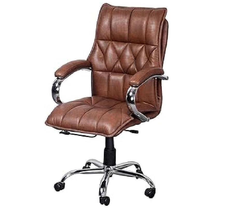 Ergonomic High Back Leather Executive Office Chair with Chrome Base Padded Armrests and Swivel Wheels